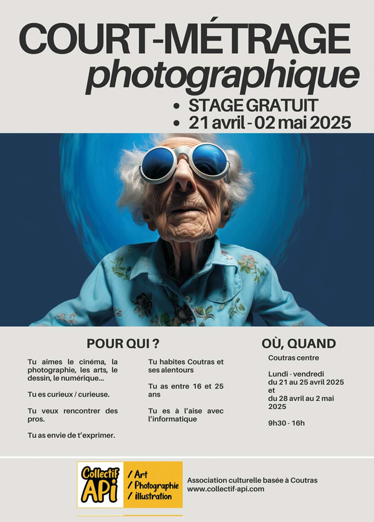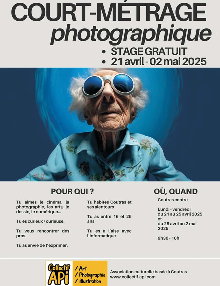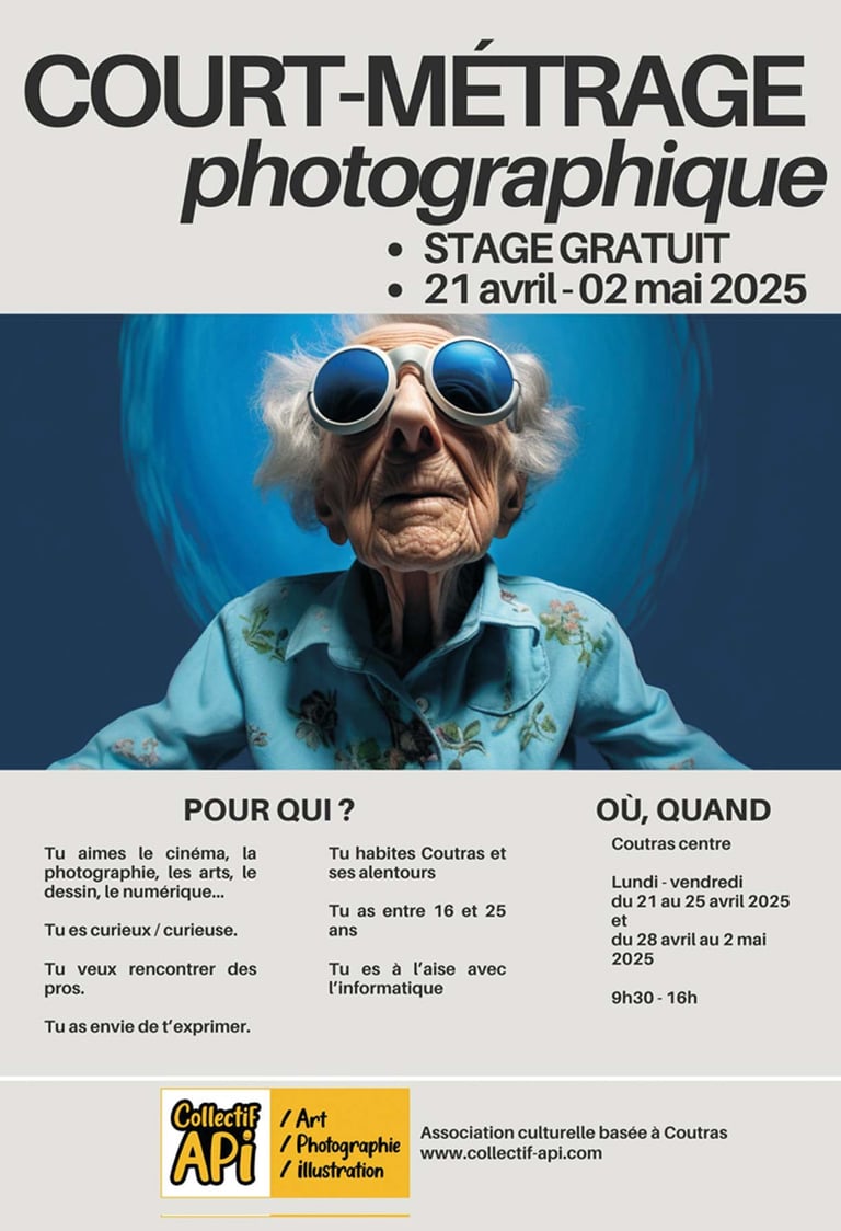 Le COLLECTIF API propose un stage de réalisation de court-métrage photographique à 6 jeunes durant les vacances de printemps 2025. Nos deux photographes professionnel·le·s vous accompagne de A à Z.