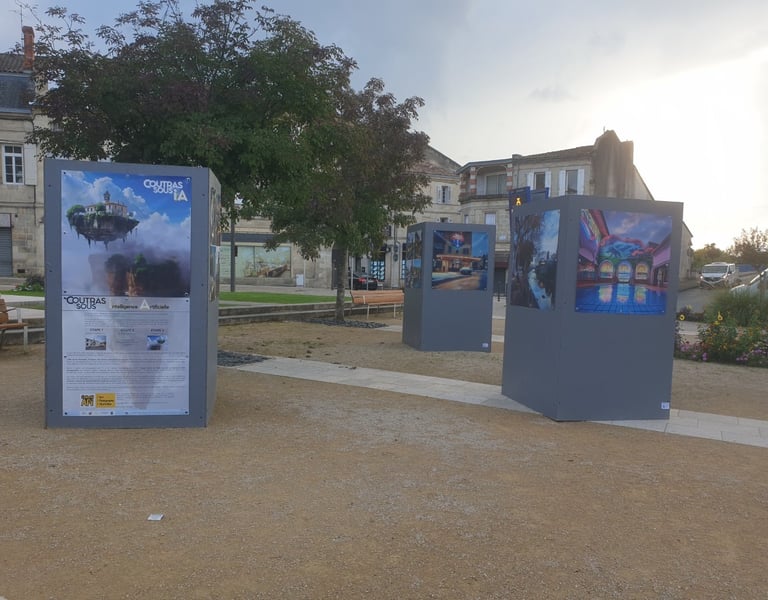 L'idée est de réinventer la ville de Coutras en demandant à l'intelligence artificielle d'imaginer des versions alternatives, parfois futuristes, pardois onirique, parfois utopiques...