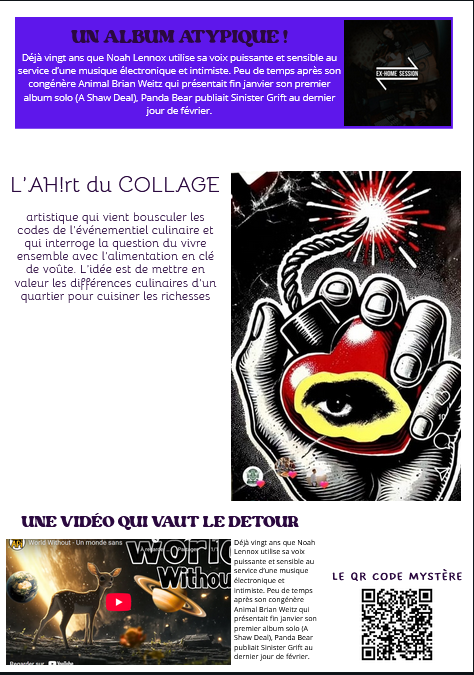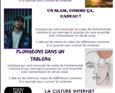 Le QG Créatif aura lieu pour partager et expérimenter autour de la création d’un magazine photo. Ce projet collectif mettra en avant l’art sous toutes ses formes : poésie, graffiti, peinture, culture numérique, littérature…